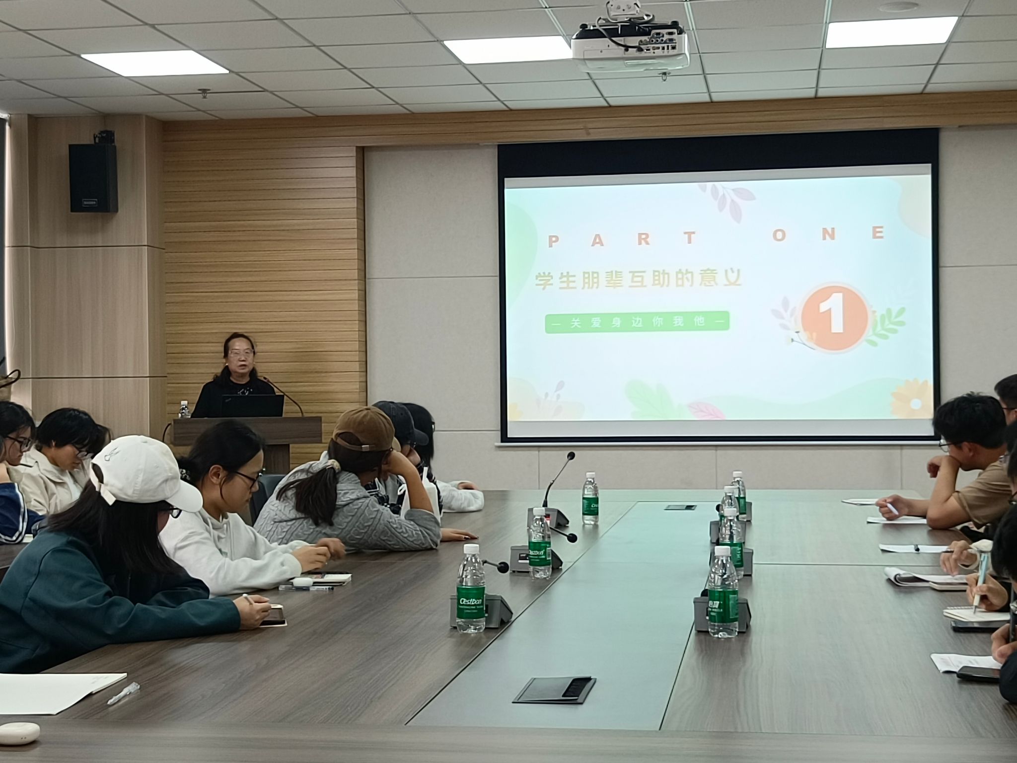 尚宇红通过生动的案例深入浅出地介绍了大学生朋辈互助的基本知识,强调了朋辈互助的重要性,重点就“大学生心理健康标准”以及“心理危机的预防干预”两个方面进行了深入讲解,让同学们对心理健康工作有了进一步认识。她结合学院2024级新生班委的实际情况,对照学生干部的工作职责和要求,为同学们介绍朋辈助人者的胜任力、合格朋辈互助者的准备以及积极向上的助人环境,鼓励同学们在关注自身心理健康的同时,做到关注他人、关心他人、帮助他人,切实履行好职责、发挥好作用,成为具有胜任力的专业朋辈助人者、校园心理健康的促进者和守护者。同学们用心倾听、积极参与,师生共同探索了朋辈帮扶的有效途径与方法,现场氛围轻松而热烈。