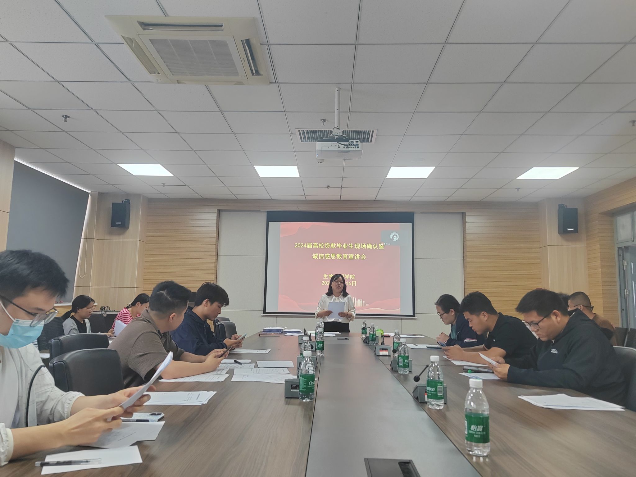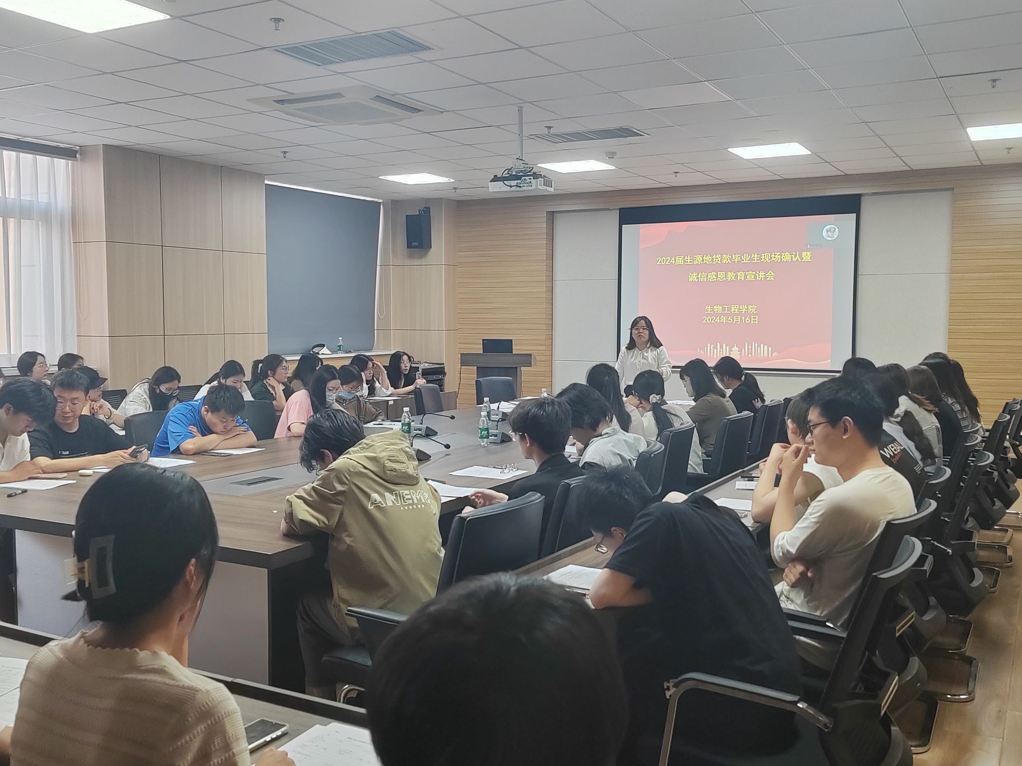 在惟德楼1313会议室分别于17:00和18:30召开2024届高校、生源地贷款毕业生现场确认暨诚信感恩励志教育宣讲会。学院资助负责人苏雪玲、资助助理及2024届全体未结清贷款的毕业生参加了本次会议。