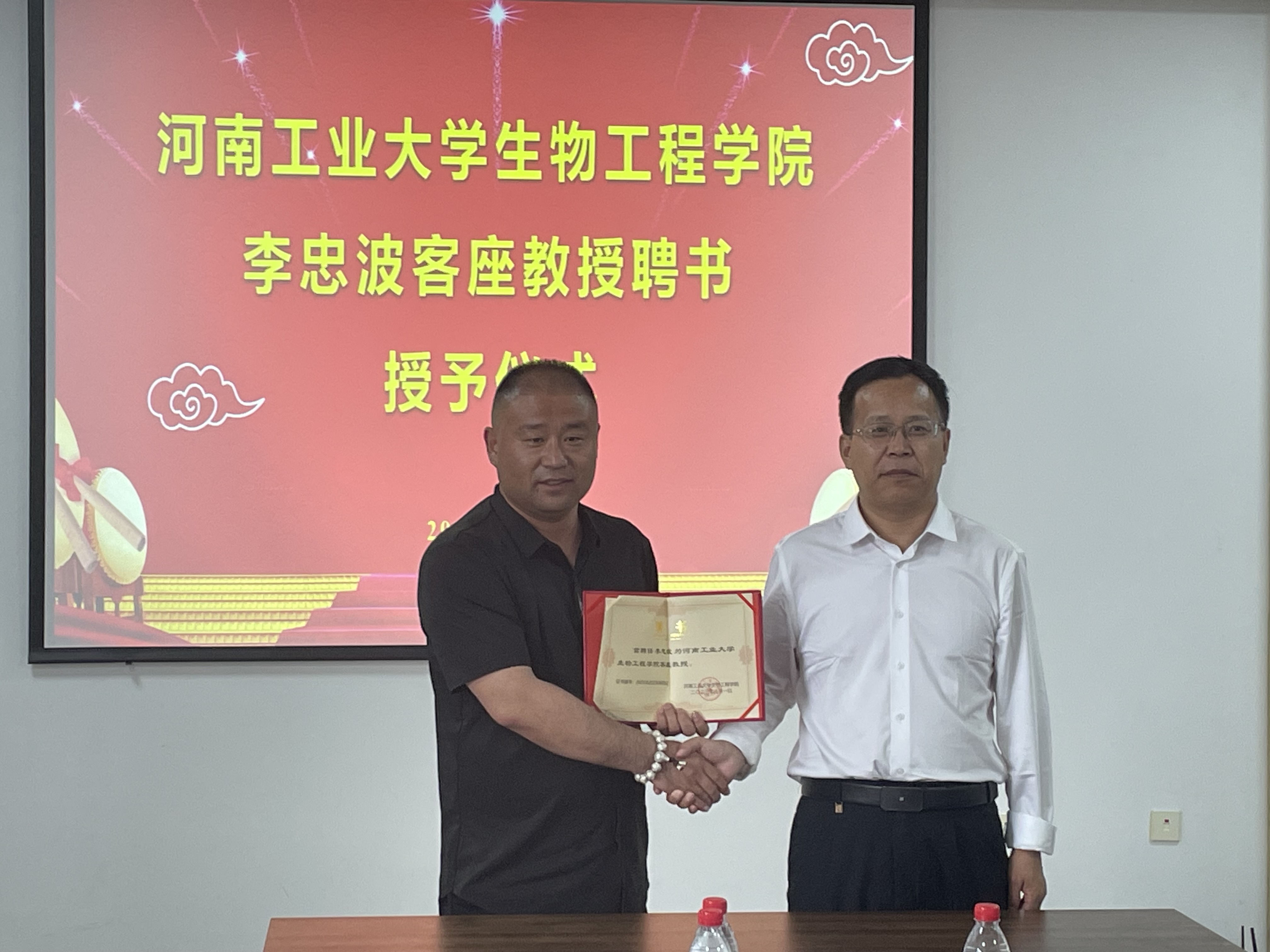 仪式上,卫红伟为李忠波颁发客座教授聘书,希望李忠波发挥自身资源优势,加强与学院的交流合作,助力学院高质量发展。