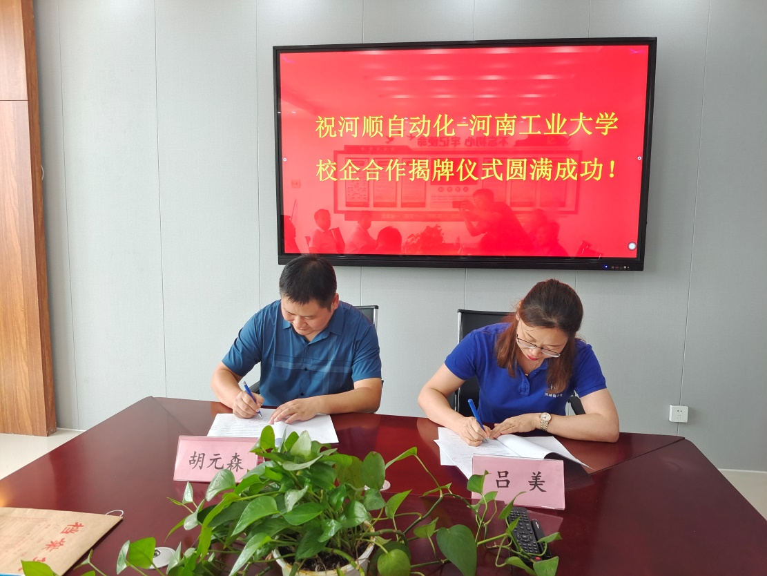 党委书记卫红伟、院长胡元森、国际学院副院长刘来亭等一行到河南河顺自动化设备股份有限公司交流考察,并签订产学研合作协议。河南河顺自动化设备股份有限公司董事长刘忠臣、总经理吕美、总工程师史建波、技术部经理宋炎明出席签约仪式。