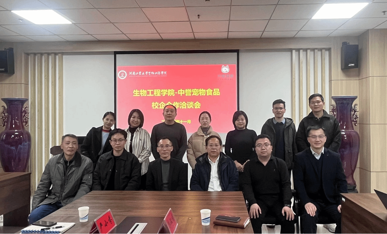 会上,卫红伟对汤化钢一行的到来表示热烈欢迎,并详细介绍了学院近年来的发展、专业优势及人才培养情况。他强调,加强校企合作将为学生提供更多实践机会,拓宽就业渠道,同时也将推动企业技术创新和发展,实现双方互利共赢,期待在未来的合作中,校企合作双方在产学研协同创新、实习实训基地建设等方面开展全方位、深层次合作。汤化钢简要介绍了公司的基本情况、人才需求及未来发展规划,并表达了与学院建立长效合作模式的愿望。希望通过合作在产品研发、平台建设、成果转化和人才共育等方面加强交流,共同培养符合宠物行业需求的专业人才,提升宠物食品研发的核心竞争力和品牌影响力。随后,双方就产教融合、人才培养等方面展开讨论。双方一致认为,应加强日常沟通与合作,积极探索多样化的合作模式,推动产学研一体化进程,共同为宠物行业发展贡献力量。