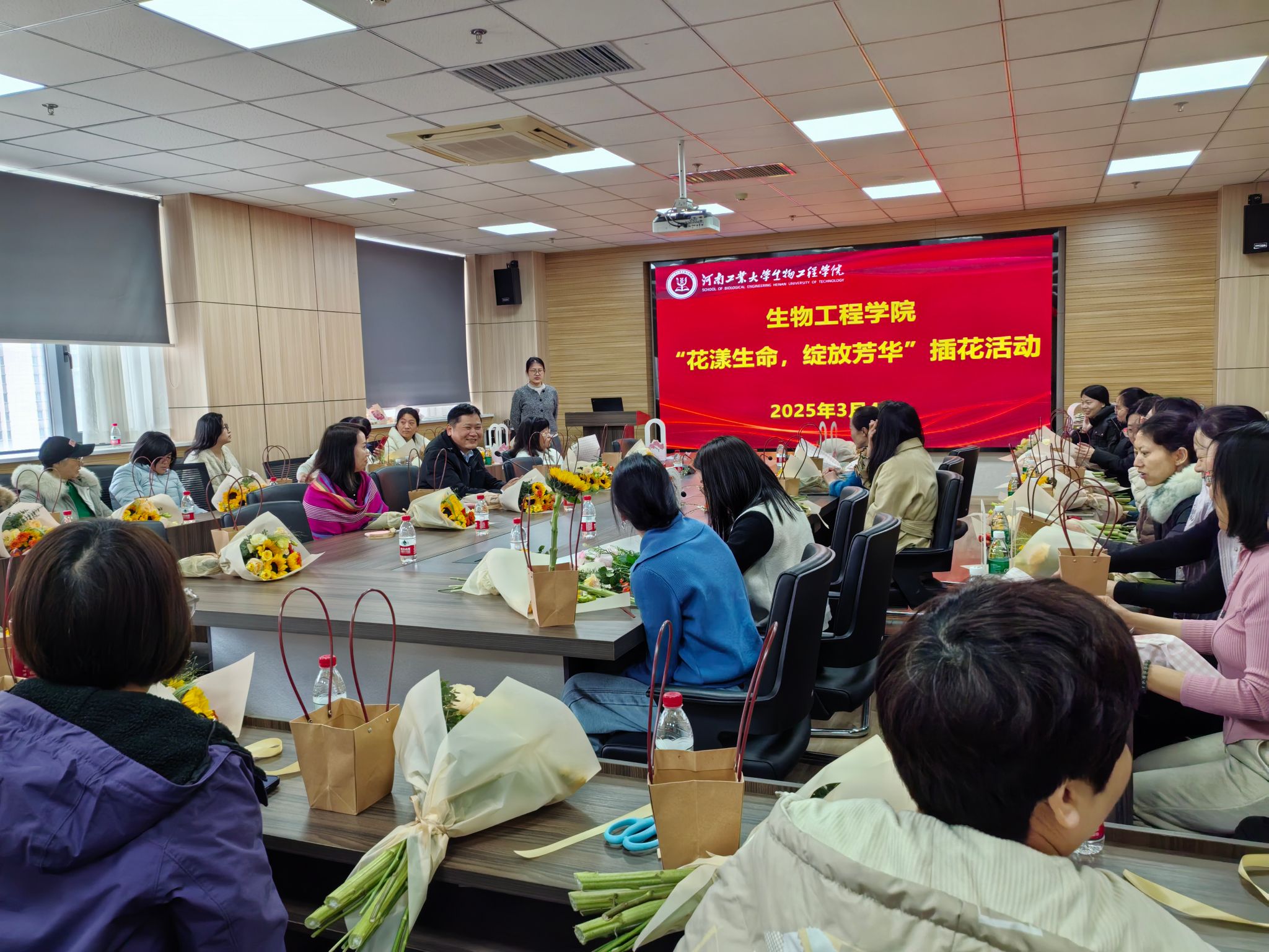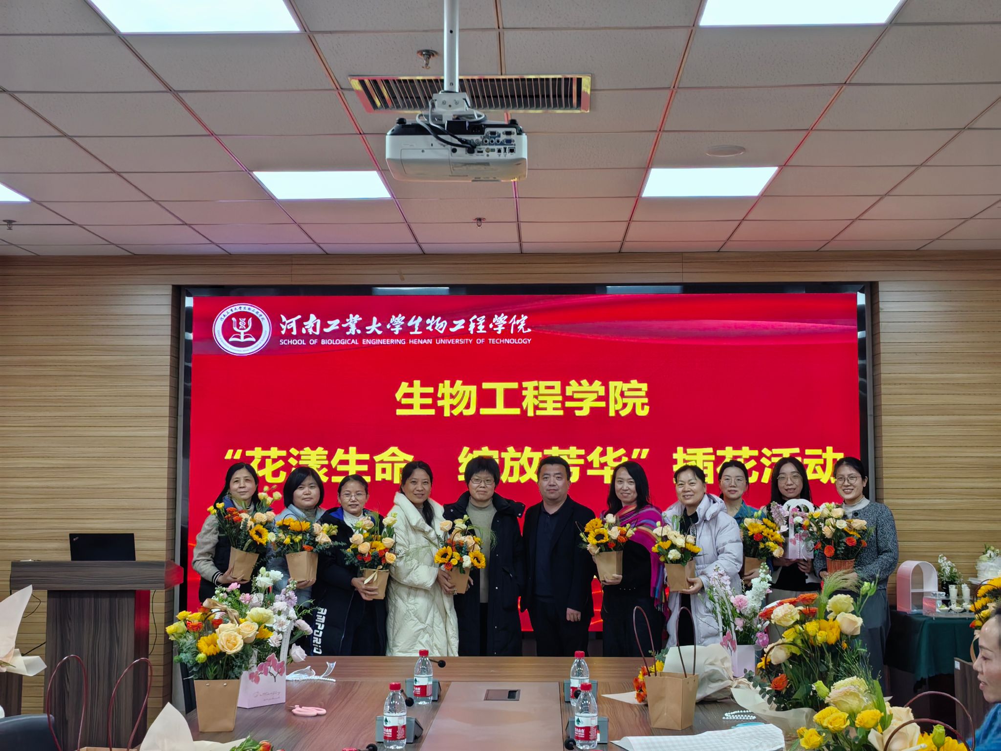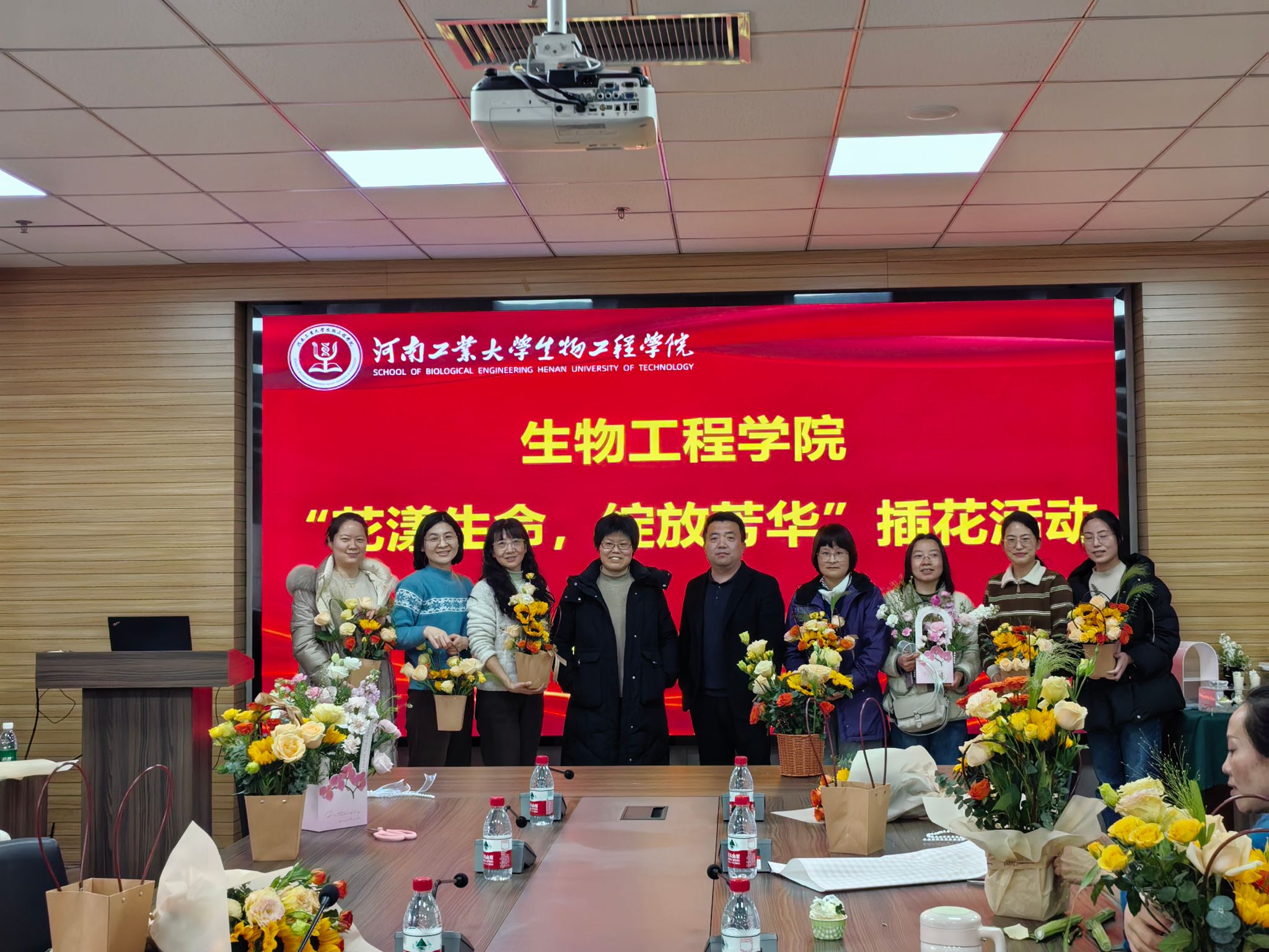在惟德楼1313会议室举办了“花漾生命,绽放芳华”主题插花活动。学院院长胡元森,副院长屈建航、梁赢及全体女职工参加了此次活动。