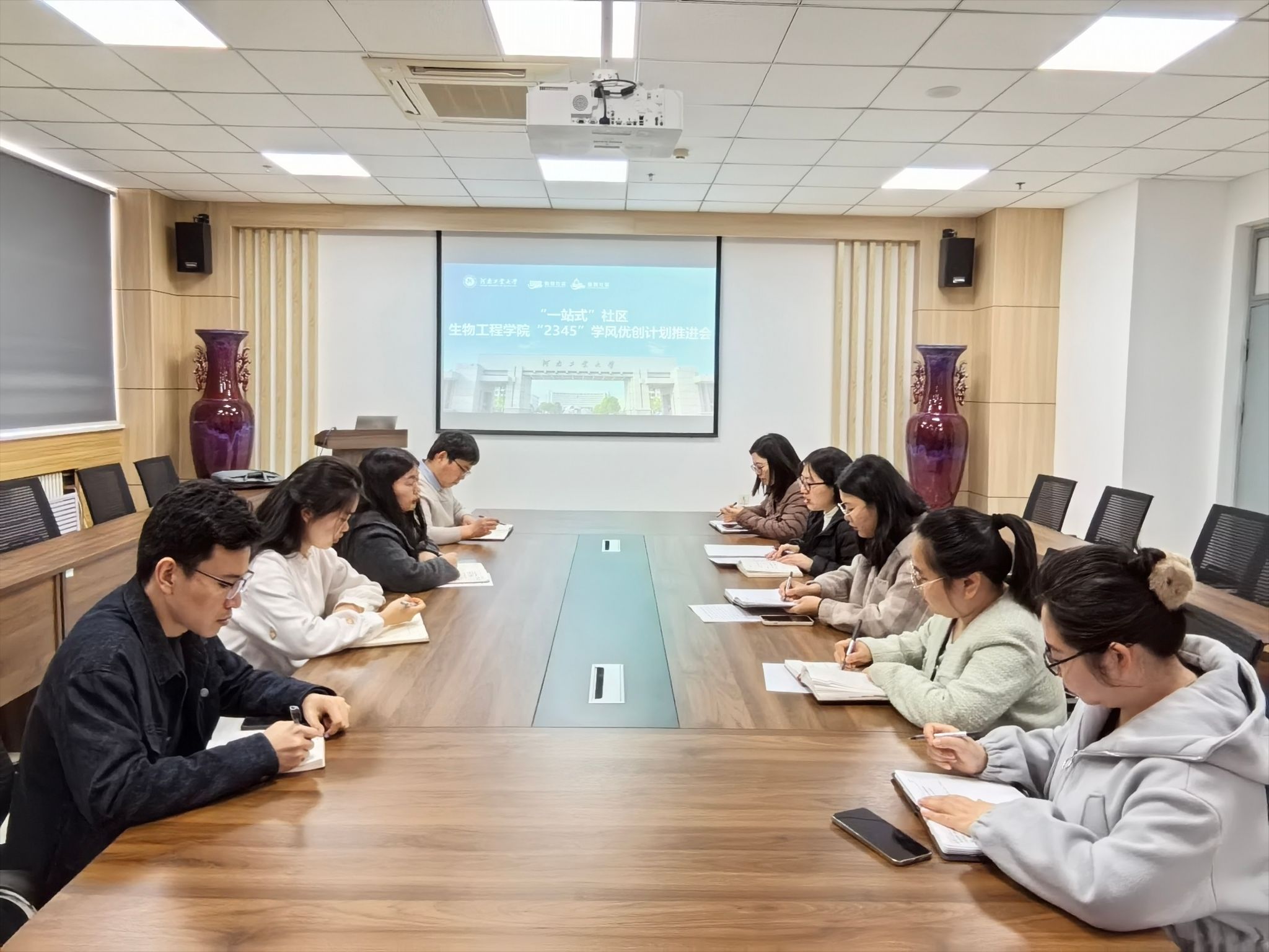 岳媛媛介绍了院学风建设品牌项目的开展情况,对项目组成员的分工进行了详细说明,并强调了各阶段任务的时间节点。随后,与会的各位辅导员老师围绕学业预警、补考重修、重点学生、班团建设、日常行为规范等方面进行了交流和沟通,并结合工作实际,提出了具体实施方案,包括设立学习互助小组、加强课堂考勤管理等措施,以确保学风优创计划的有效推进。