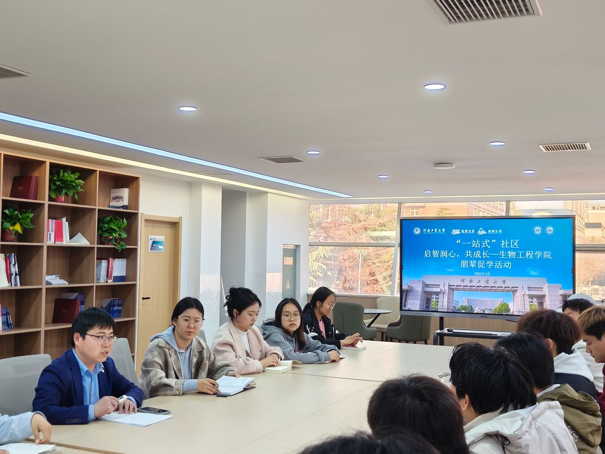 在钟楼德园“一站式”学生社区开展朋辈促学活动。学院团委书记杨雨薇、辅导员孟建峰、学生党员、学生部和各年级学困学生代表参加了会议。