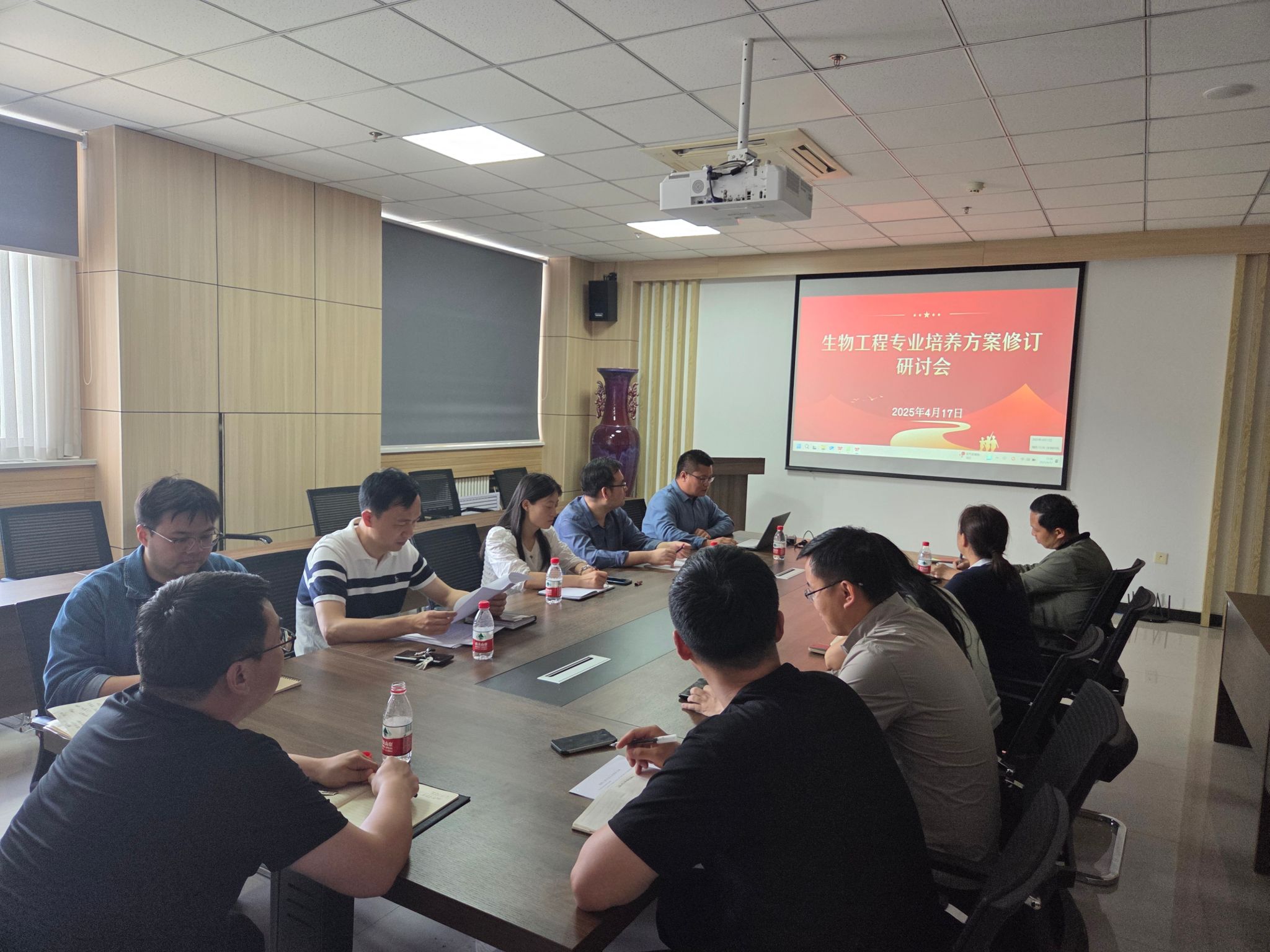2025年4月17日,生物工程专业在34号楼1318会议室召开了关于《2025版生物工程专业人才培养方案》修订讨论会。会议由生物工程系主任张帅兵教授主持,培养方案修订工作小组全体成员参加。此次会议梳理了生物工程专业培养方案修订过程中在前一阶段取得的进展、存在的问题以及对应的解决方案,并重点讨论了课程体系的设置与优化,促进了最终版培养方案的形成。