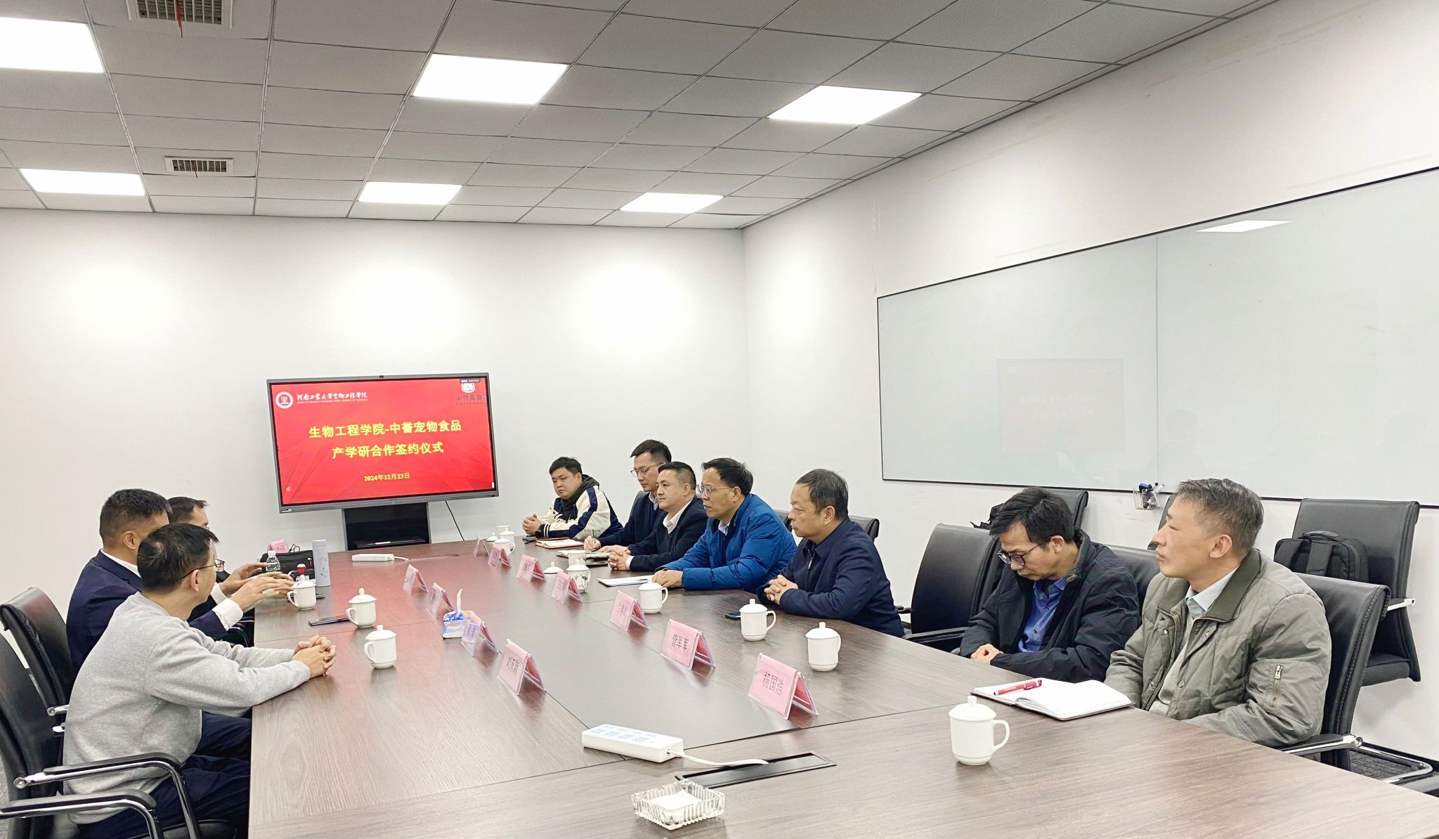 会上,安中平对卫红伟书记一行的到来表示热烈欢迎,详细介绍了公司的发展历程、产品定位及市场规划等情况,表达了与学院构建长期稳定合作关系的深切期望,希望在产品研发、平台建设、成果转化以及人才共育等方面深化交流,强化合作。他指出,中誉宠食计划通过设立奖学金、奖教金等一系列激励举措,与学院携手培育出一批既精通专业知识,又紧密贴合宠物行业实际需求的高素质复合型人才,共同为宠物行业的蓬勃发展注入强劲动力。