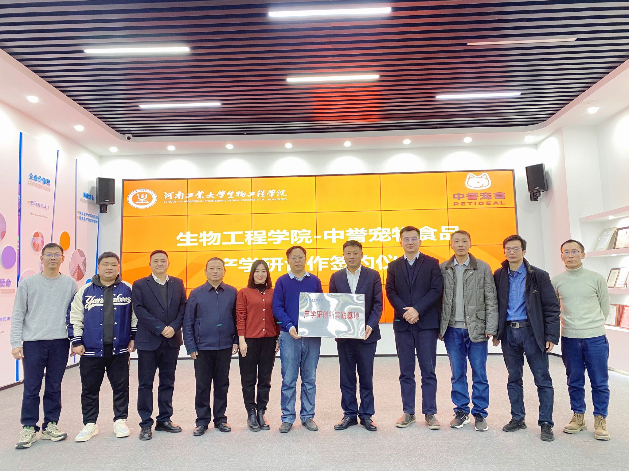 党委书记卫红伟、动物科学系主任乔汉桢、“饲料工程科技创新团队”带头人管军军一行赴中誉宠物食品(漯河)有限公司举行产学研创新实践基地签约授牌仪式。中誉宠食董事长安中平、鲜宠事业部总负责人汤化钢等公司代表,海瑞正检测董事长兰尊海、总经理兰剑以及海涯文化传媒董事长董海军等企业代表共同出席了签约与授牌仪式。仪式由汤化钢主持。