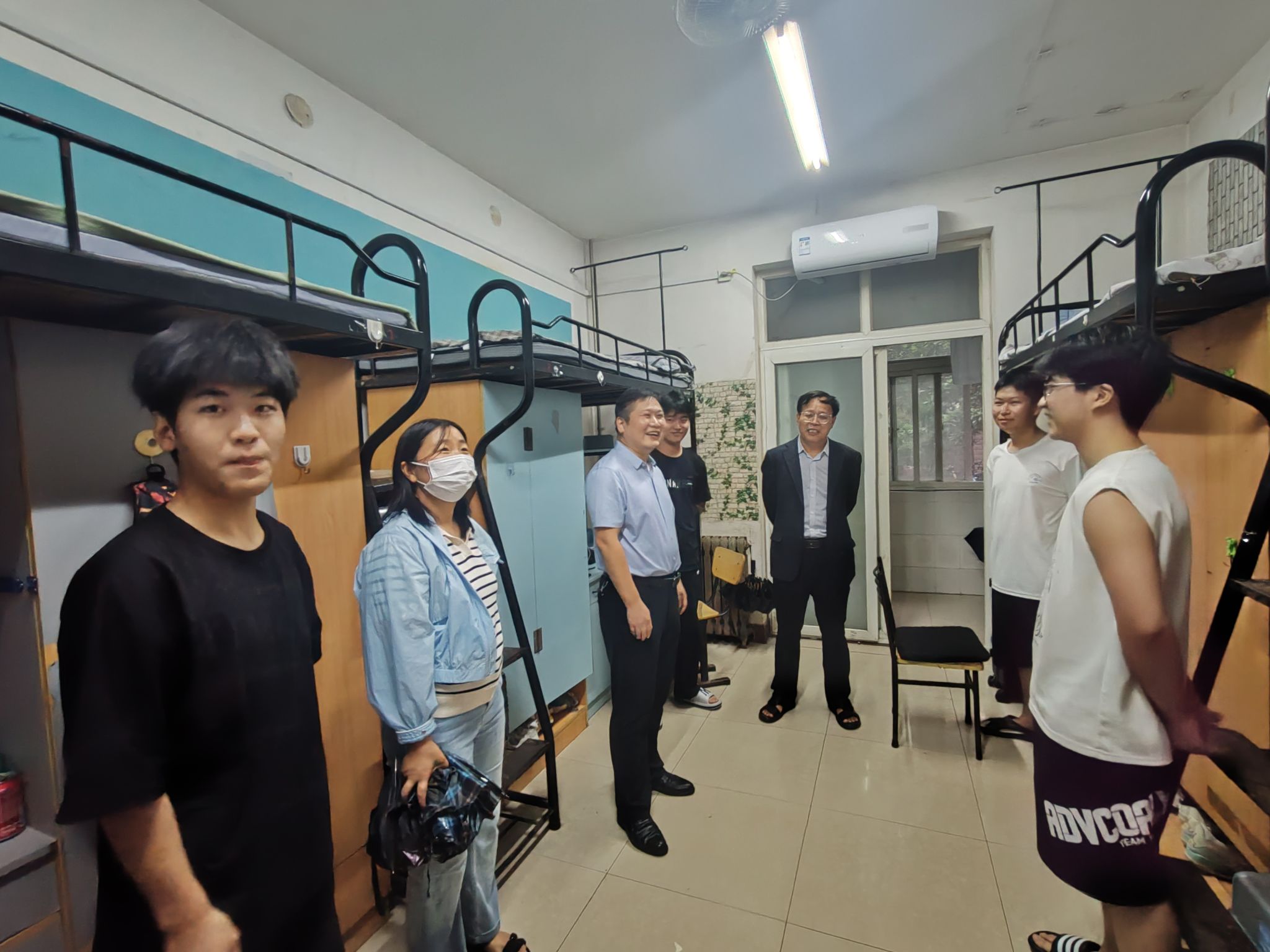 在走访过程中,学院领导老师仔细查看了同学们的住宿环境,与新生们进行了亲切交谈,详细询问了同学们的入校感受、饮食与住宿等情况,并耐心解答了同学们提出的关于专业学习、校园生活等方面的问题。老师们鼓励大家尽快熟悉校园环境,加强交流沟通,及时调整状态,明确大学目标,做好学业规划,积极进取,不断提升自身综合素养。老师们特别叮嘱大家要增强自我保护意识,注意人身与财产安全,警惕网络诈骗,严格遵守校纪校规,共同维护和谐稳定的校园环境。