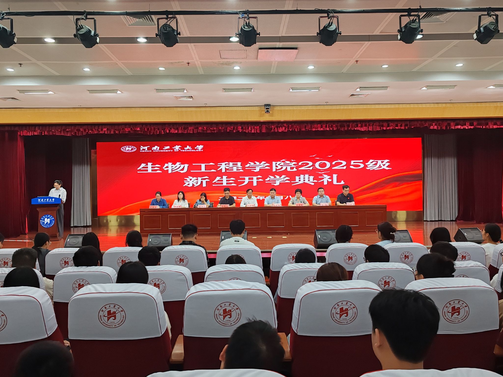 典礼在庄严的国歌声中拉开序幕。教师代表王莹莹结合自身科研与教学经历,勉励新生们保持对生物科学的好奇心与敬畏心,在实验中求真知,在实践中强本领,以严谨的科学态度迎接未来挑战。在校生代表丁芝瑞分享了自己的大学生活感悟,她鼓励学弟学妹们“既要埋头读书,也要抬头看路”,积极参与学科竞赛与科研项目,在学院搭建的平台中锻炼能力、拓宽视野。