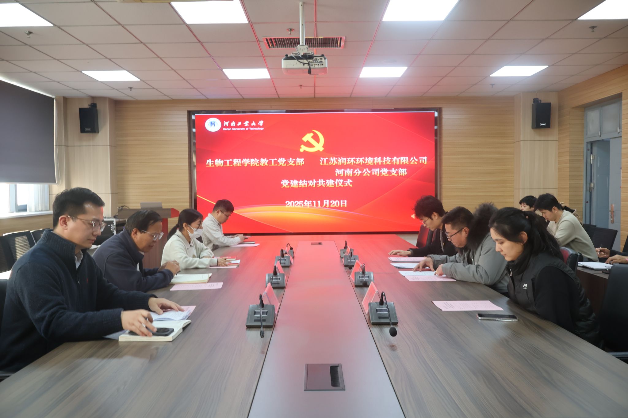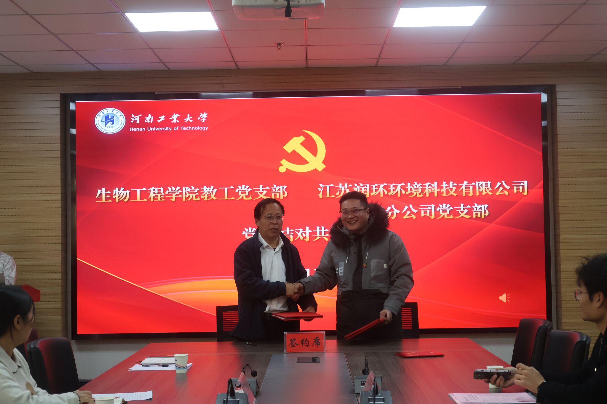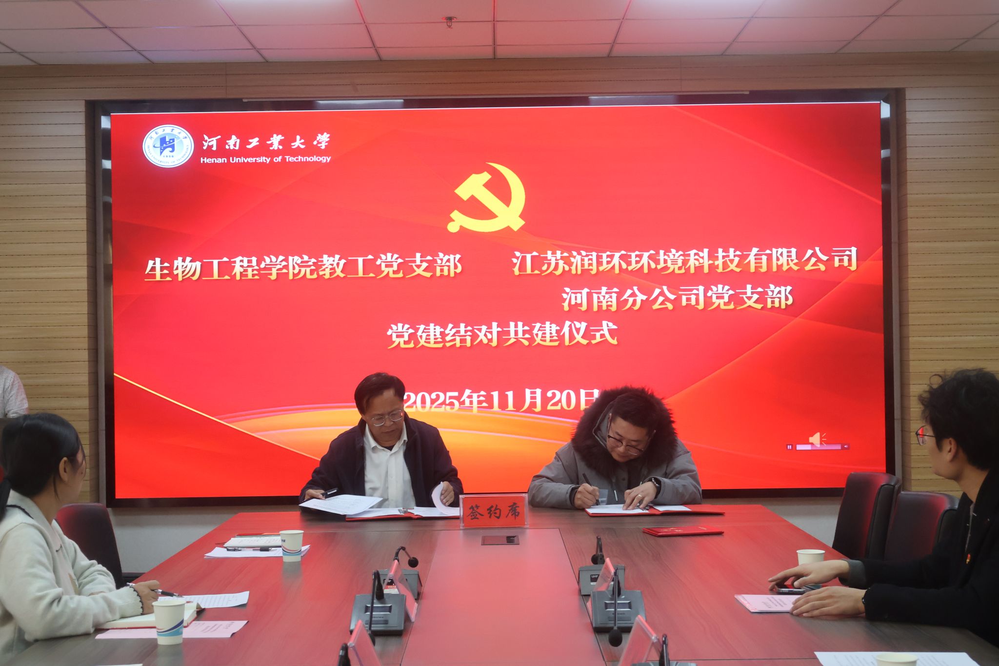 教工党支部与江苏润环环境科技有限公司河南分公司党支部在惟德楼1313会议室举行结对共建签约仪式。我校生工2001级校友、江苏润环环境科技有限公司河南分公司总经理刘从彬,yanetfix