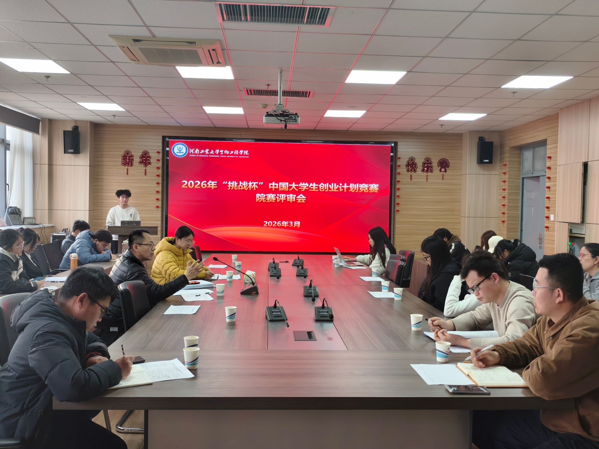 在惟德楼1313会议室举办2026年“挑战杯”中国大学生创业计划竞赛学院选拔赛。会议特邀“挑战杯”国家级优秀指导教师、信息科学与工程学院教授吕宗旺担任评委,学院党委副书记蔡永平,指导教师代表及各项目负责人参加会议。会议由学院团委书记杨雨薇主持。