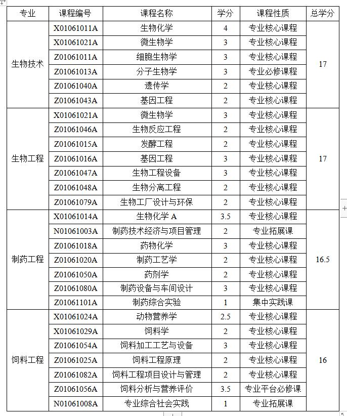 各专业荣誉学分课程设置表