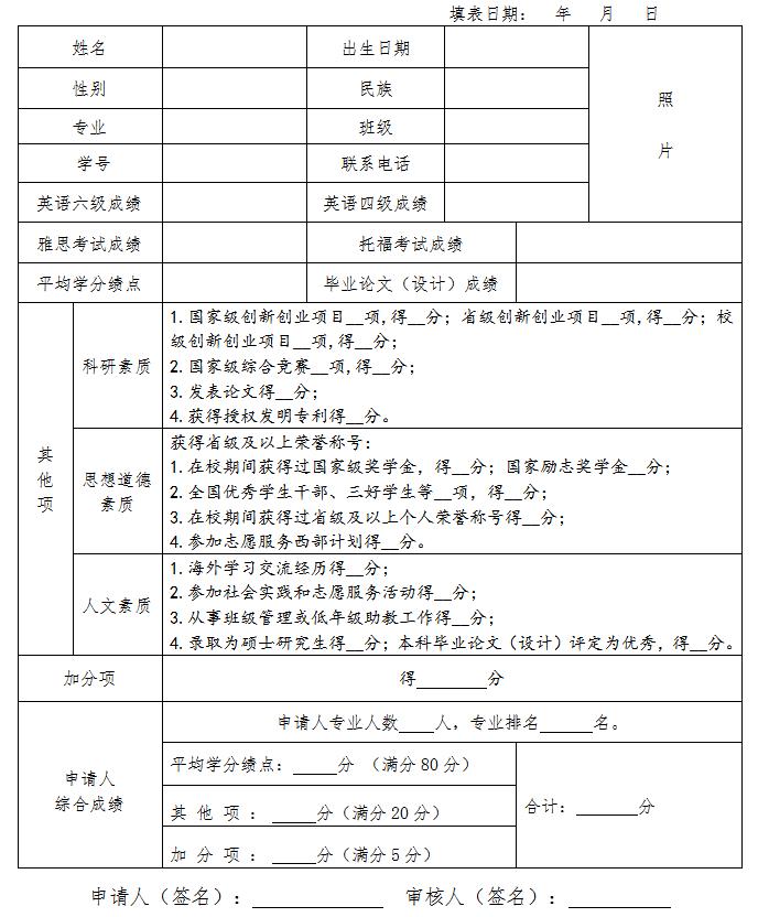 荣誉学士学位申请表