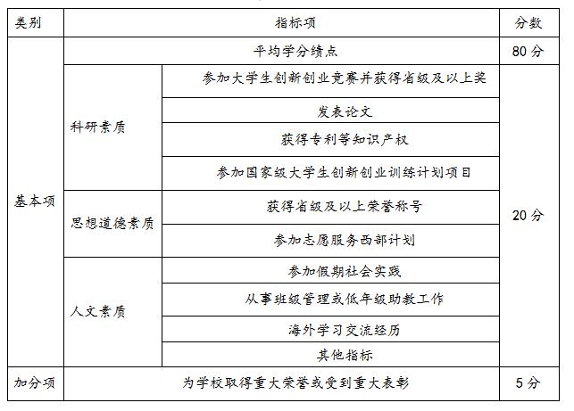 4.录取为硕士研究生得5分;本科毕业论文(设计)评定为优秀,得5分。