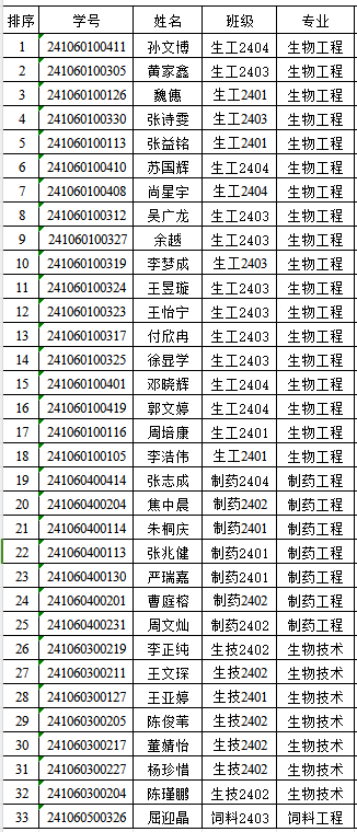 注:名单顺序为按专业排序。