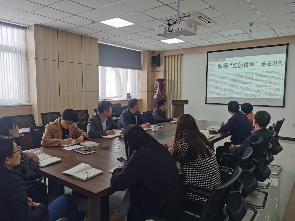 随后,与会同志集中观看了《红船精神》的党史教育片。该片以中共一大召开为背景,影片讲述了红船精神产生的历史背景、时代特征、组织基础和深刻内涵。1921年7月21-30日,党的一大在上海举行,由于受到法租界的干扰,会议从上海转移到浙江嘉兴南湖的游船上继续召开。在这里通过了中国共产党的第一个纲领,通过了中国共产党的第一个决议,选举产生中国共产党的第一个中央领导机构。党的纲领的诞生也就意味着政党的诞生,所以嘉兴南湖这次会议宣示着中国共产党的正式诞生。2005年6月21日,习近平同志在《光明日报》发表署名文章《弘扬红船精神,走在时代前列》,第一次公开阐述“红船精神”。在文章中,习近平同志将红船精神的内涵高度概括为:开天辟地、敢为人先的首创精神;坚定理想、百折不挠的奋斗精神;立党为公、忠诚为民的奉献精神。红船精神的内涵,反映的是我们中国共产党的建党精神,红船精神是中国革命精神之源,是党的先进性之源,这种精神引领着一代又一代共产党人奋勇前进。