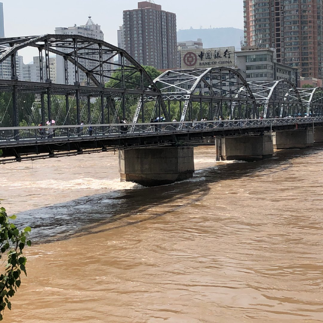 7月22日下午,调研小组在到达黄河中山桥后,先后参观了中山桥和白塔山公园,通过实地考察了解了兰州外滩黄河现状,据资料显示,从七里河桥到中山桥,河道长约5.4km,河宽300-380m,出金城关有夹心滩外,河床比较稳定,河堤基本形成。通过采访中山桥上游客得知,由于连日降雨,黄河水位有小幅度上涨,可以看到黄河兰州段水量充足,水质较好,城区段对黄河保护程度重视,河段保护效果显著。